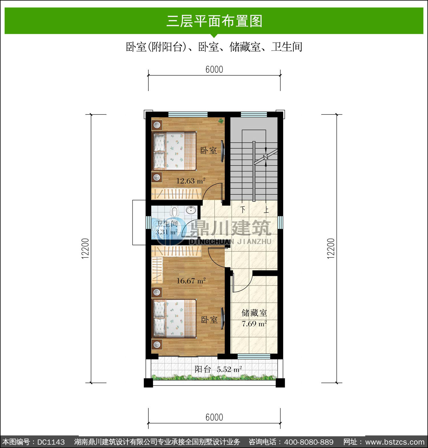 三 層: | 臥室(附陽臺)、臥室、儲藏室、衛生間 | |||