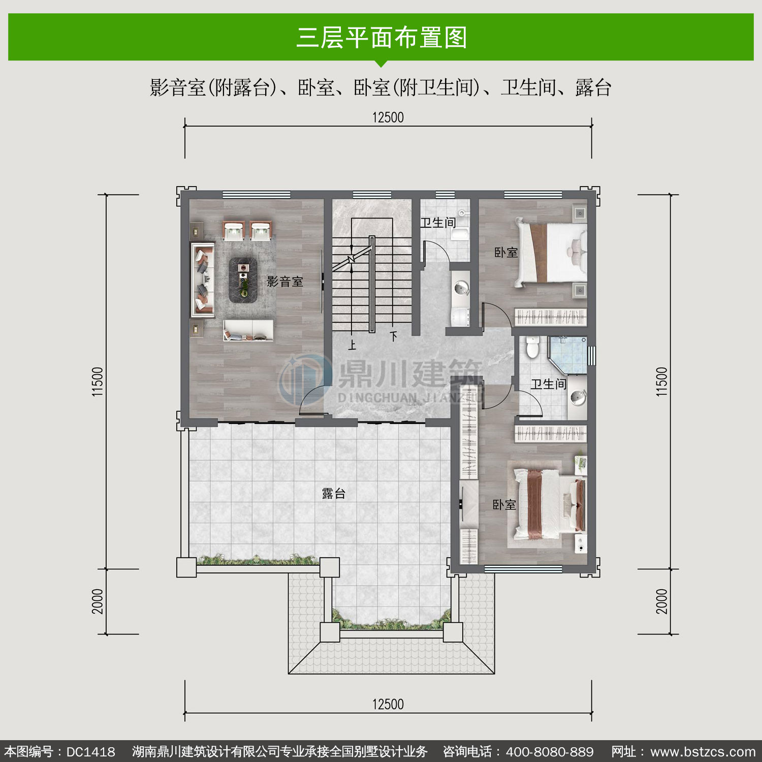 | 三 層: | 影音室(附露臺)、臥室、臥室(附衛(wèi)生間)、衛(wèi)生間、露臺 | |||