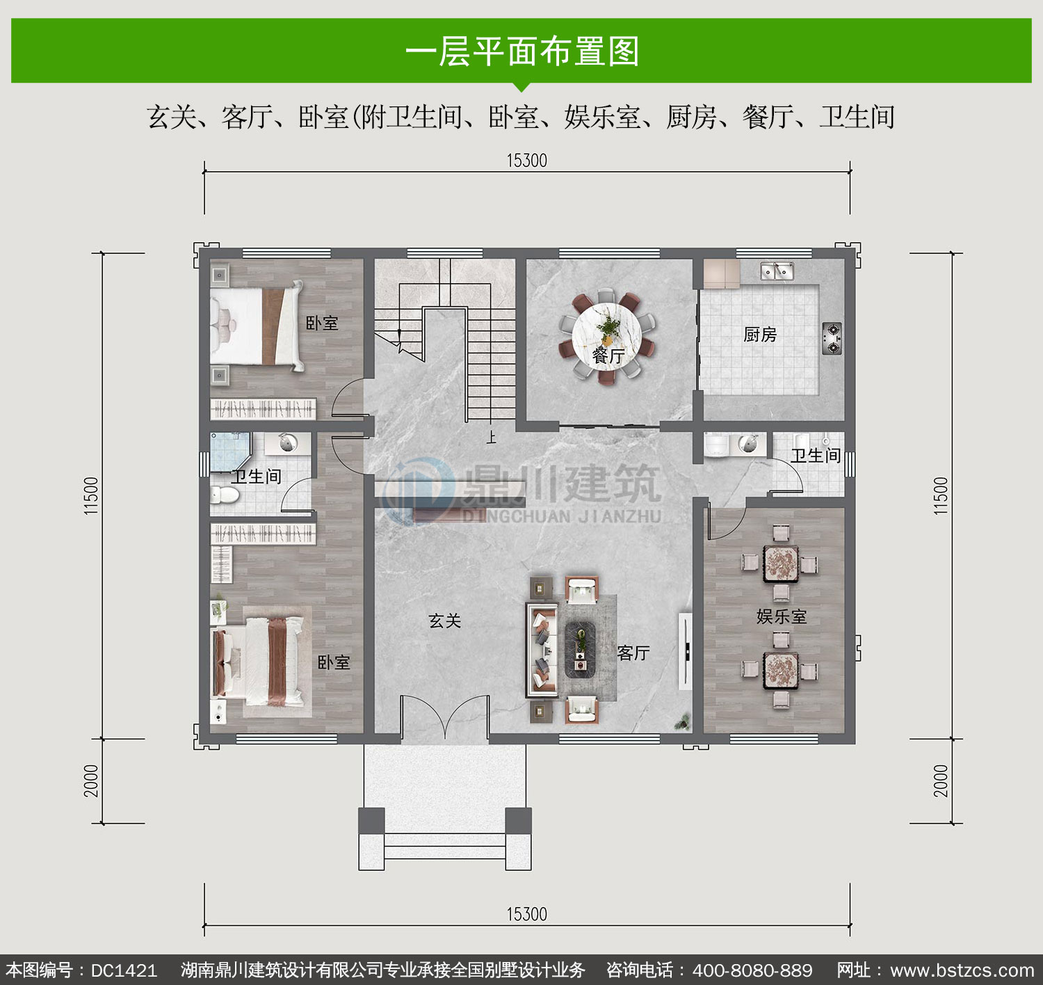| 一 層: | 玄關(guān)、客廳、臥室(附衛(wèi)生間、臥室、娛樂(lè)室、廚房、餐廳、衛(wèi)生間 | |||