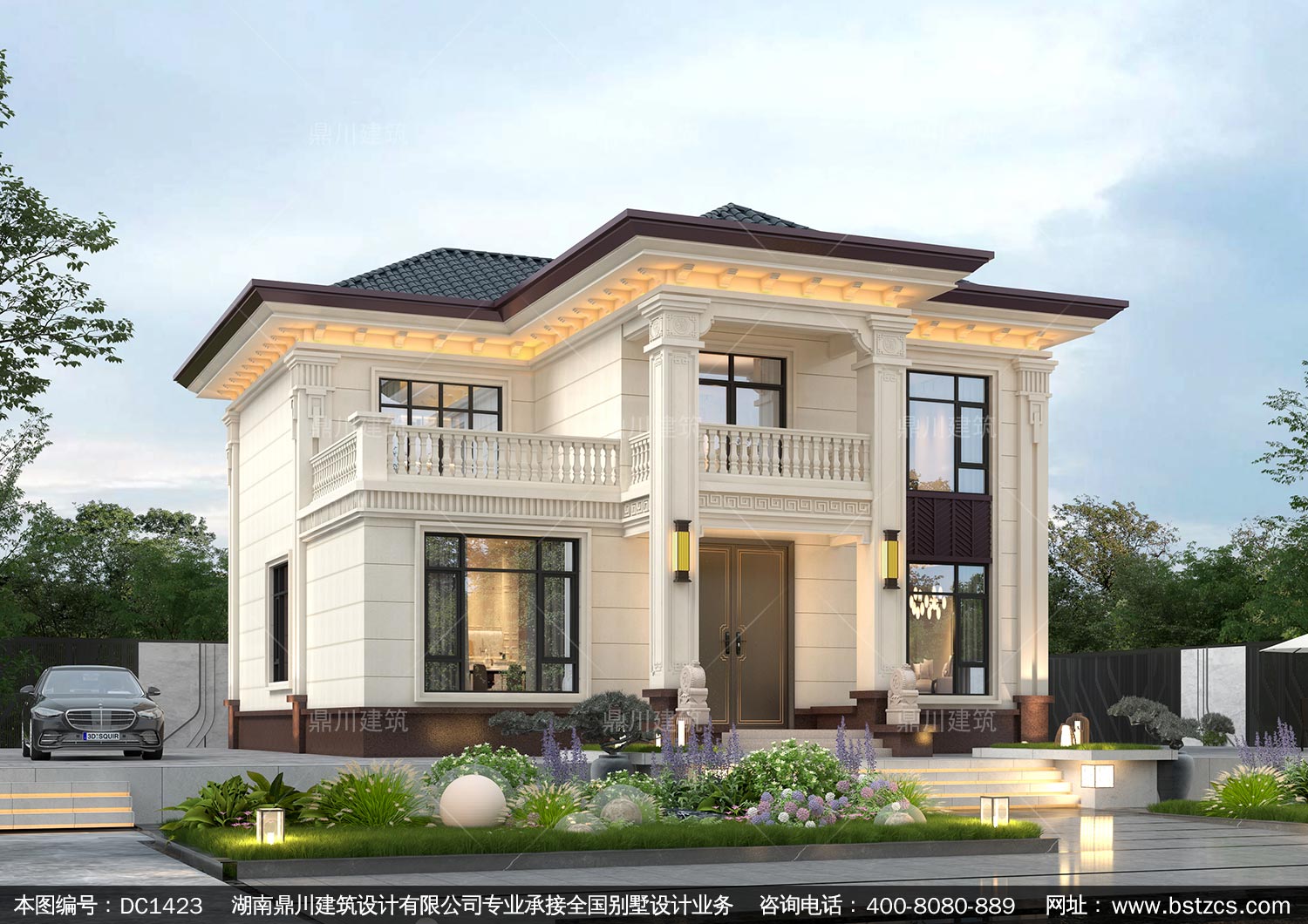 大氣新中式二層別墅設計圖紙及效果圖_農村自建房設計,鼎川建筑