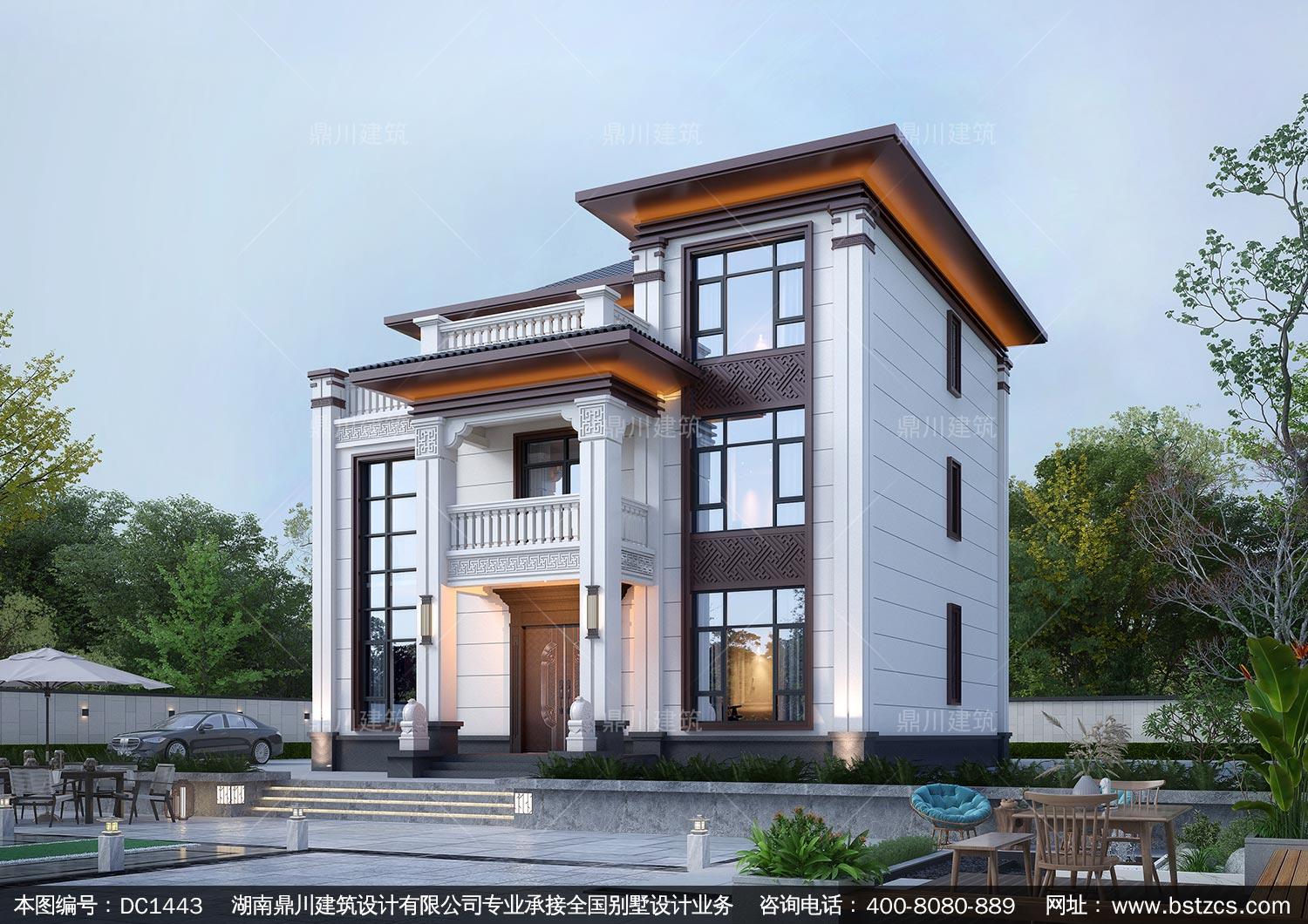 大氣新中式三層別墅設計圖紙及效果圖_農村自建房設計,鼎川建筑