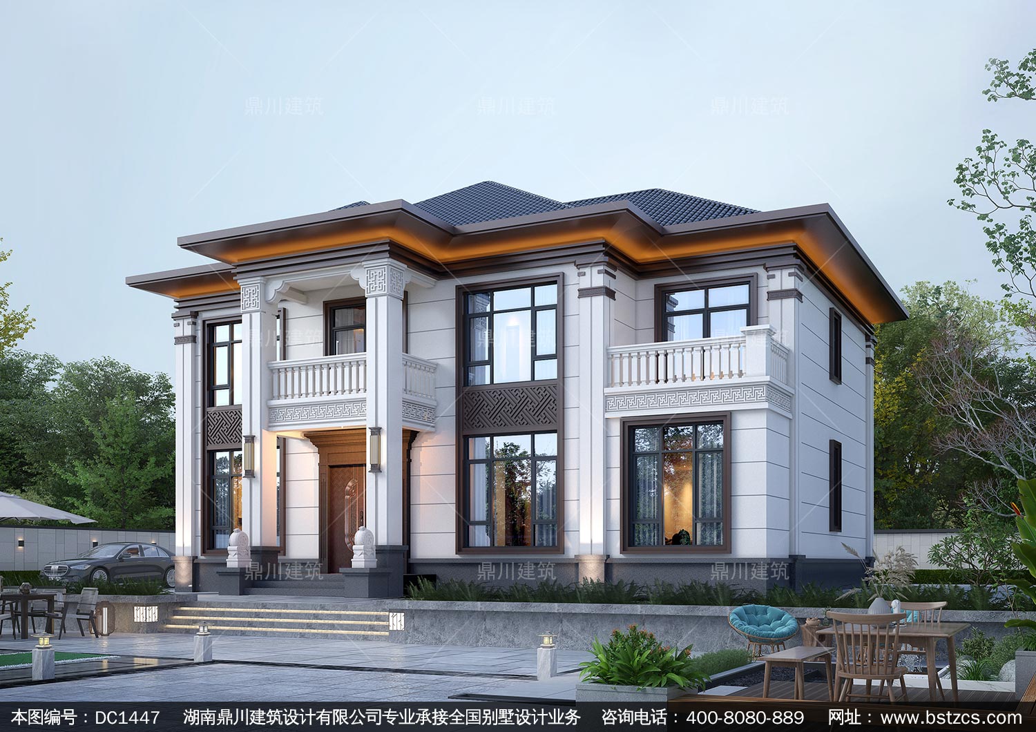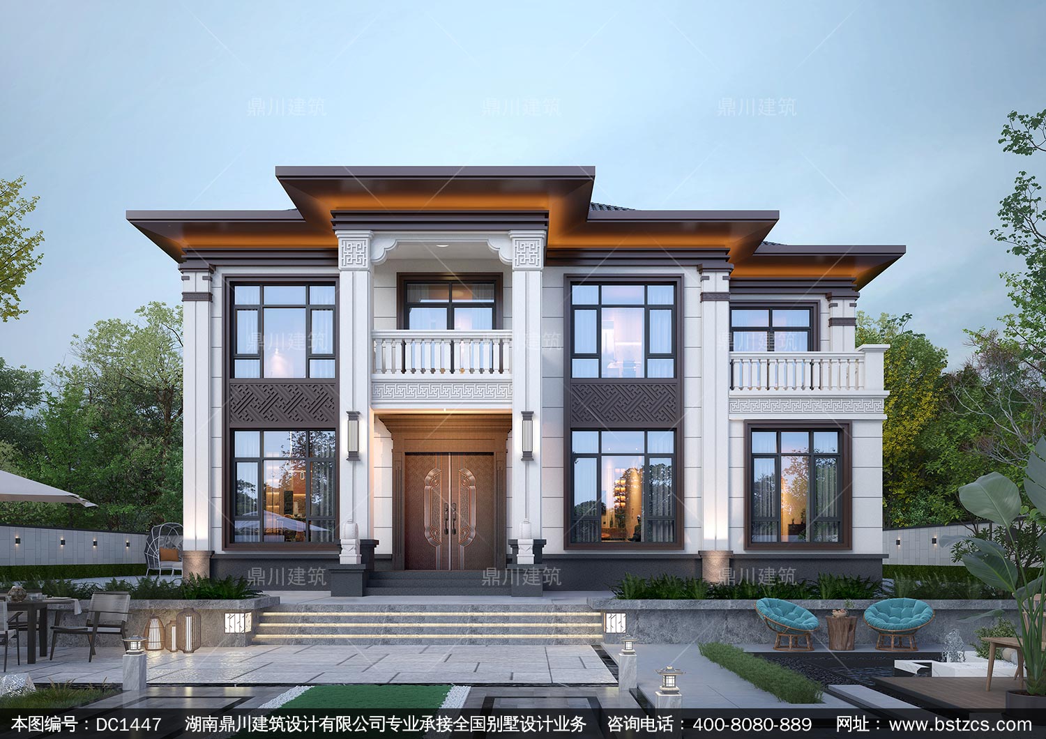 大氣新中式二層別墅設計圖紙及效果圖_農(nóng)村自建房設計,鼎川建筑