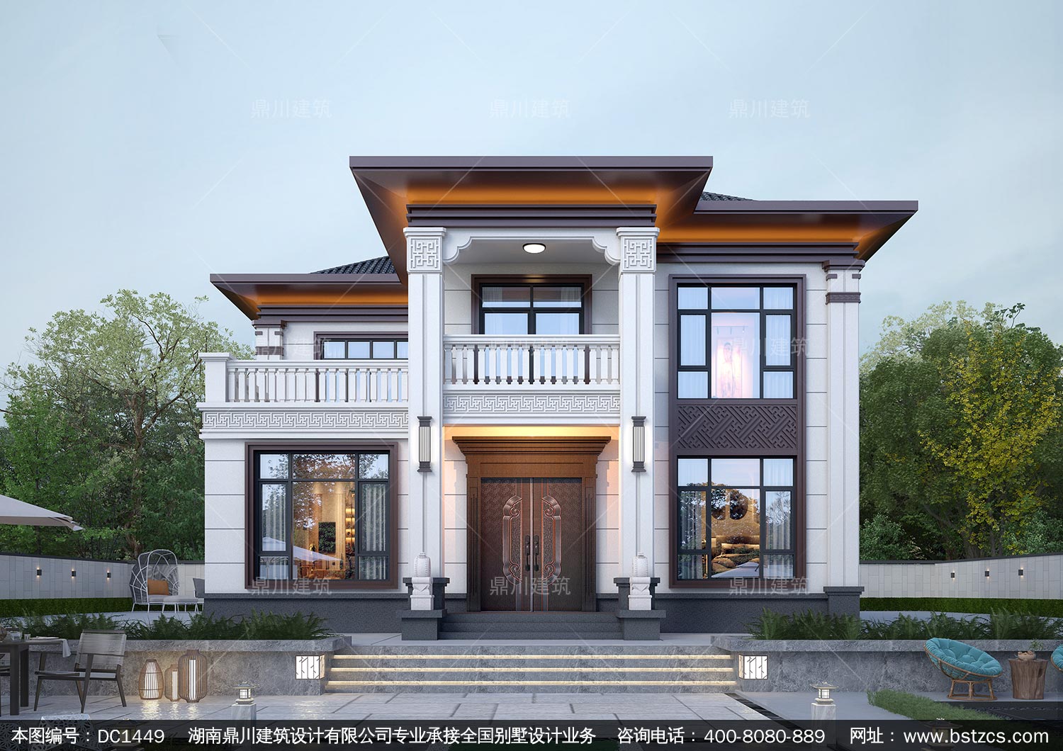 大氣新中式二層別墅設計圖紙及效果圖_農(nóng)村自建房設計,鼎川建筑