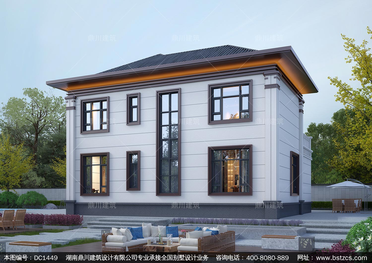 新中式二層別墅施工圖紙及效果圖_農(nóng)村自建別墅設計,鼎川建筑