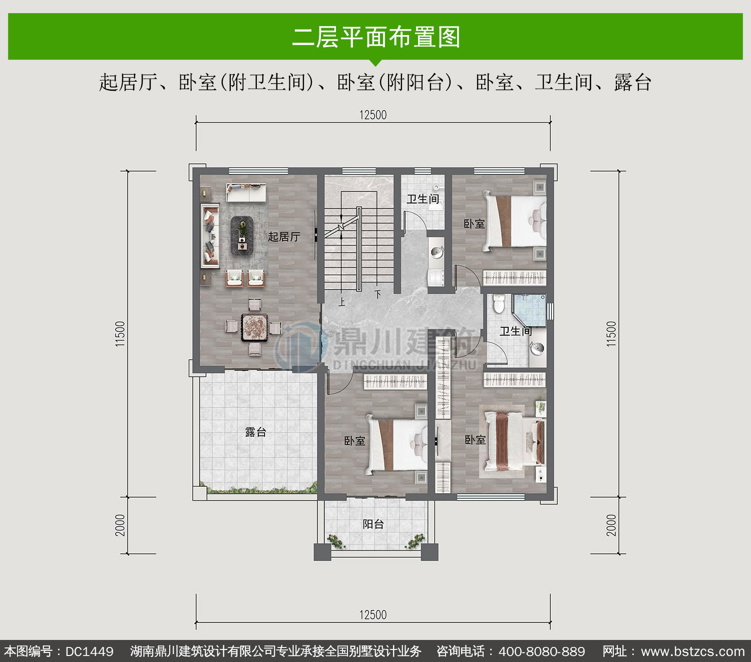 | 二 層: | 起居廳、臥室(附衛(wèi)生間)、臥室(附陽臺)、臥室、衛(wèi)生間、露臺 | |||