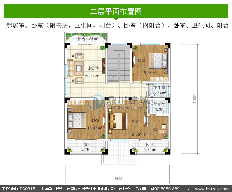 二 層: | 起居室、臥室(附書房,衛(wèi)生間,陽臺)、臥室(附陽臺)、臥室、衛(wèi)生間、陽臺 |